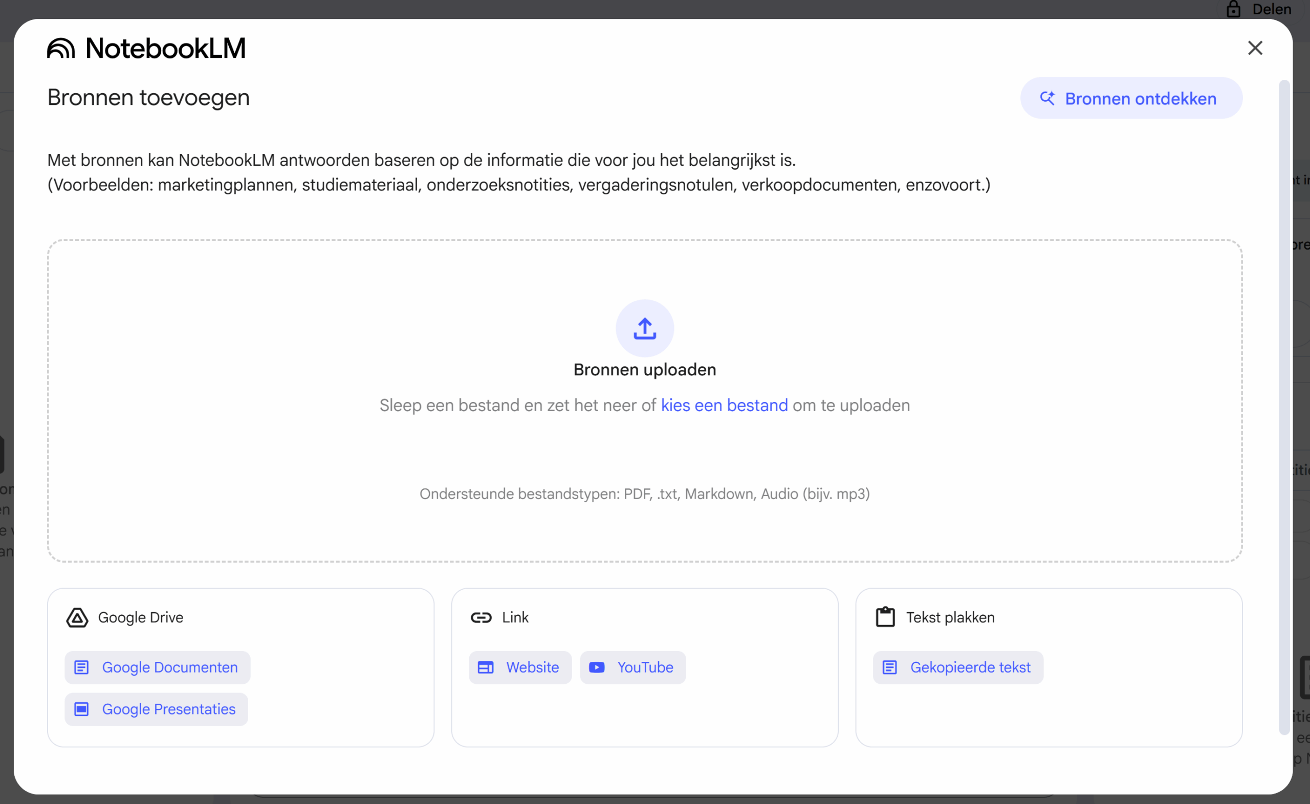 Maar soms wil je de kracht van NotebookLM gebruiken voor andere informatie. Goed nieuws is dat kan